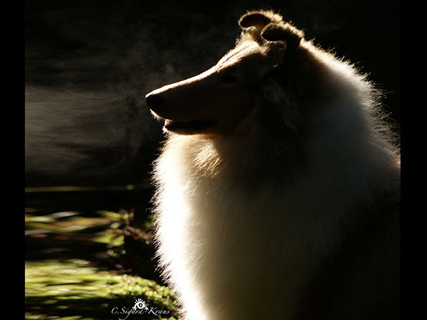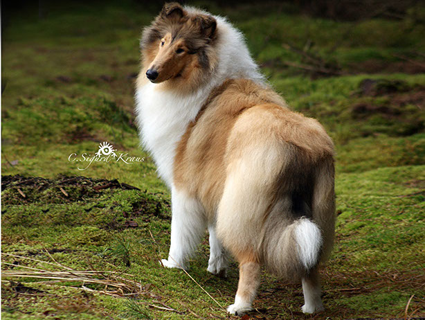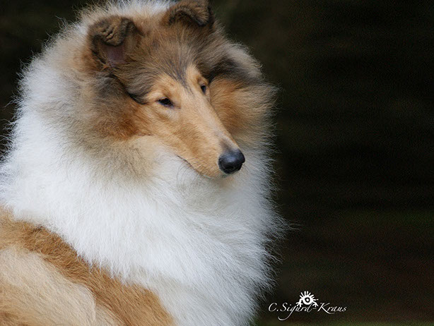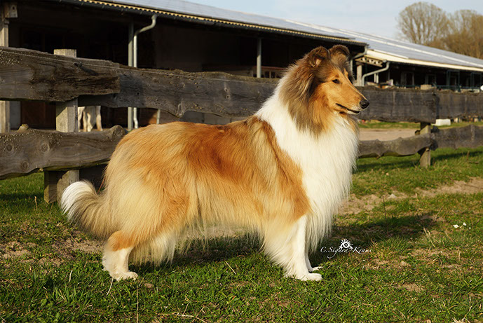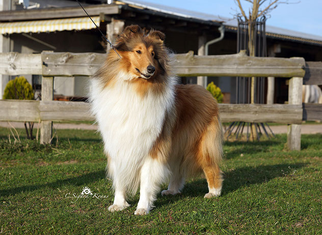'BONNY' ist eine ausgesprochen liebe, sehr ausdrucksstarke und edle Hündin. Wie ihre Mutter 'Hailey', hat sie ein sehr ausgeglichenes Wesen und ruht dabei in sich. Sie ist furchtlos gegenüber unbekannte Situationen und Geräusche. Ihr verhalten ist stets überaus freundlich gegenüber Menschen und zeigt sich auch sehr motiviert beim Training (Gehorsam, Tricks). Im Ausstellungsring wurde sie bereits erfolgreich präsentiert. Sie zählt unter die TOP-10 der erfolgreichsten Ausstellungshunde 2014! (lt.: Collie Journal 06/15) Titel Deutscher Champion Club (DCC) Ausstellungsergebnisse/ Show results 5xCAC, 1xJCAC, 2xBOS,4xBOB, 2xBIS Erklärung: CAC = Certificat d'Aptitude au Championat Anwartschaft für den Titel „Deutscher Schönheitschampion BOS = Best Opposite Sex – das sind der beste Rüde und die beste Hündin einer Rasse BOB = Best of Breed – das ist der Beste Hund der Rasse, ermittelt aus den beiden BOS-Hunden BIS = Best in Show – das ist der schönste Hund einer Ausstellung, ermittelt aus allen BOB-Hunden 'BONNY' is such a good girl, very nice expression and very elegant. She has like her mother 'Hailey' a gentle nature. She fears nothing 'Bonny' loves people and is very trainable. She was already shown very successfully in the showring. She is among the TOP-10 of the most successful showdogs 2014! (acc. to.: Collie Journal 06/15) Titel German Champion Club (DCC) Ausstellungsergebnisse/ Show results 5xCAC, 1xJCAC, 2xBOS,4xBOB, 2xBIS Definition: CAC = Certificate d’Aptitude au Championat National competence certificate for the championship BOS = Best Opposite Sex – is the best animal in the ring of the opposite sex to Best of Breed BOB = Best of Breed BIS = Best in Show