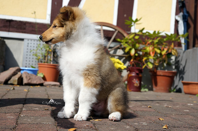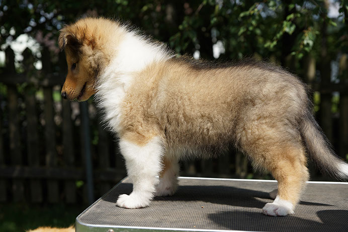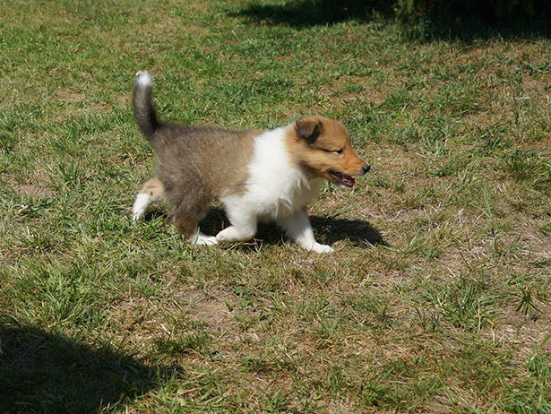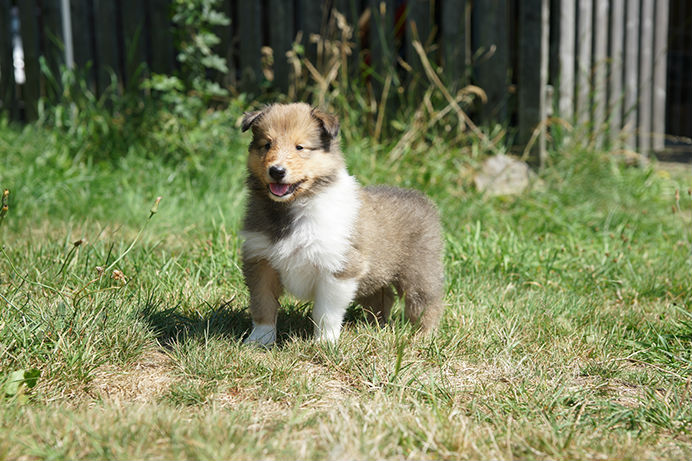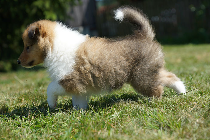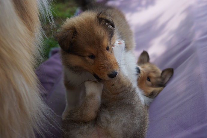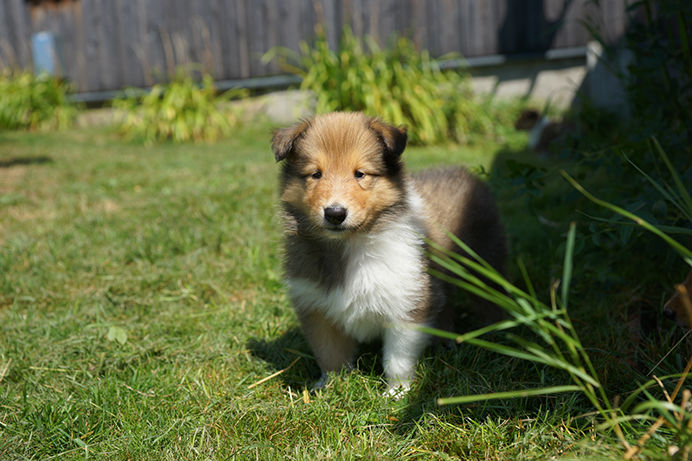 E-Wurf 'Pinot' schenkte uns am 29.06.2015 drei sable Rüden nach unserem 'Percy'. 'Pinot' ist eine sehr gute Mutter und ist sehr stolz auf ihre drei kleinen Prinzen. Es sind sehr brave und ruhige Welpen und entwickeln sich sehr gut. 1. Rüde: sable, schmaler durchgehender Kragen: Glenoak Enlightened "KODA" (Verkauft) Koda lebt in Finnland und ist ein richtiger Allrounder! Schäfchen hüten gehört mittlerweile zum Alltag, aber er dürfte so ziemlich einer der Wenigen seiner Rasse sein der als Wasser-Rettungshund ausgebildet wird. Auf Schönheits-Wettbewerben hat er auch schon einige Erfolge nach Hause gebracht. Koda hat sogar einen eigenen Blog mit tollen Fotos seiner Abenteur und kleinen Filmchen. Schauen Sie doch mal vorbei: http://pehkonelamaa.blogspot.de/ 2. Rüde: sable, halber Kragen: Glenoak Evening Light (Verkauft) 3. Rüde: sable, breiter Kragen: Glenoak Enchanting Light (Verkauft) E-Litter 'Pinot' gave us three sable and white puppy boys on 29th of June, 2015 proud father is our 'Percy'. 'Pinot' is a very good mother and loves her three little princes. They are beautiful puppies, develope super and behave very well. 1. Boy: sable, slim full collar: Glenoak Enlightened "KODA" (Sold) Koda lives in Finland and is a true all-rounder. Herding is almost his daily exercise but he must be one of the few of his breed who does water rescue! He is also successful at beauty-competitions. Koda has is own blog, there you can see some nice pictures and short movies. If you want have a look: http://pehkonelamaa.blogspot.de/ 2. Boy: sable, half collar: Glenoak Evening Light (Sold) 3. Boy: sable, full collar: Glenoak Enchanting Light (Sold)