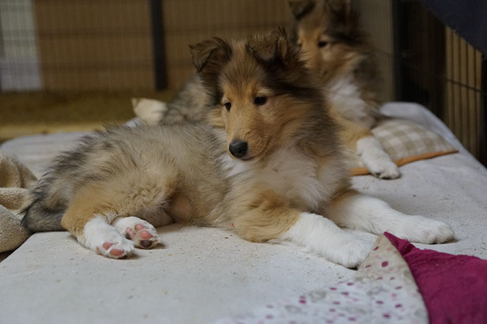 F-Wurf *29.11.15 Wir heißen unsere sieben Advents-Colliekinderchen willkommen! Vier sable Rüden, zwei sable Hündinnen und eine trico Hündin. Marcy hat ihren ersten Wurf souverän gemeistert und die junge Familie ist wohlauf. 1. Hündin: sable-white Glenoak Fairy Qeen (vergeben) 2. Hündin: sable-white Glenoak Fantasy Girl (vergeben) 3. Hündin: tricolor Glenoak Fire In My Soul (vergeben) 4. Rüde: sable-white Glenoak Fahrenheit (vergeben) 5. Rüde: sable-white Glenoak Fairplay (vergeben) 6. Rüde: sable-white Glenoak Final Touch (vergeben) 7. Rüde: sable-white Glenoak Freeze Frame (vergeben) F-Litter We welcome our seven Advent-puppies! Marcy did a good job and everybody is doing fine „heart“-Emoticon Four sable boys, two sable girls and one trico girl. Proud sire is Pol. CH. Tapestry Hold That Dream. We would like to thank Beate Alexander for making this combination possible. 1. Hündin: sable-white Glenoak Fairy Qeen (placed) 2. Hündin: sable-white Glenoak Fantasy Girl (placed) 3. Hündin: tricolor Glenoak Fire In My Soul (placed) 4. Rüde: sable-white Glenoak Fahrenheit (placed) 5. Rüde: sable-white Glenoak Fairplay (placed) 6. Rüde: sable-white Glenoak Final Touch (placed) 7. Rüde: sable-white Glenoak Freeze Frame (placed)