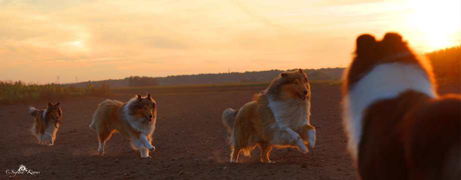 Willkommen/Welcome Unsere Collies beim Spielen auf den hauseigenen Wiesen/ Our Collies playing on our property.