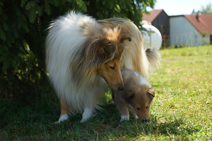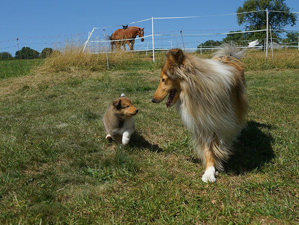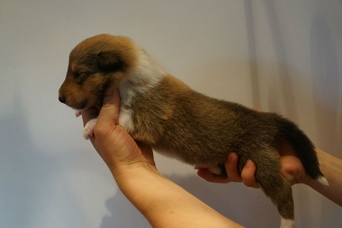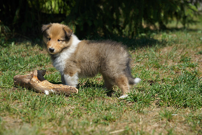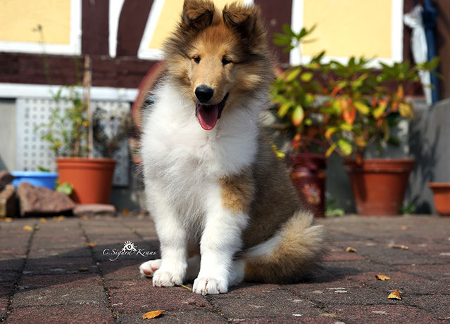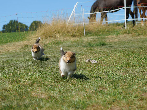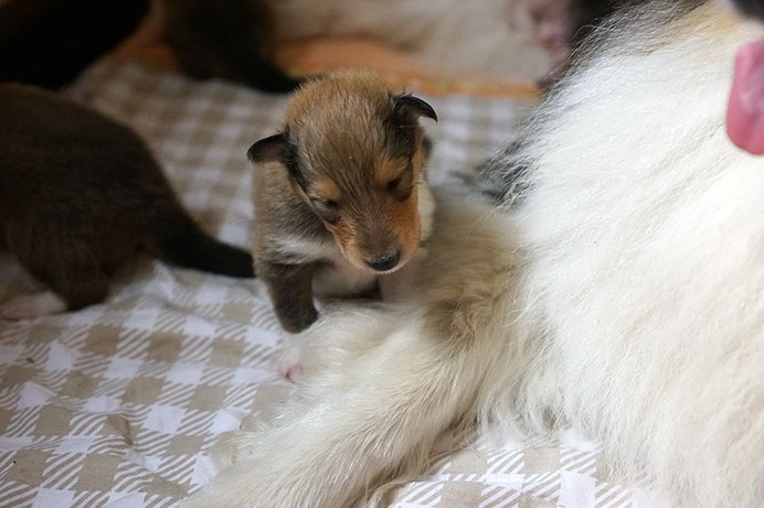 E-Wurf 'Pinot' schenkte uns am 29.06.2015 drei sable Rüden nach unserem 'Percy'. 'Pinot' ist eine sehr gute Mutter und ist sehr stolz auf ihre drei kleinen Prinzen. Es sind sehr brave und ruhige Welpen und entwickeln sich sehr gut. 1. Rüde: sable, schmaler durchgehender Kragen: Glenoak Enlightened "KODA" (Verkauft) Koda lebt in Finnland und ist ein richtiger Allrounder! Schäfchen hüten gehört mittlerweile zum Alltag, aber er dürfte so ziemlich einer der Wenigen seiner Rasse sein der als Wasser-Rettungshund ausgebildet wird. Auf Schönheits-Wettbewerben hat er auch schon einige Erfolge nach Hause gebracht. Koda hat sogar einen eigenen Blog mit tollen Fotos seiner Abenteur und kleinen Filmchen. Schauen Sie doch mal vorbei: http://pehkonelamaa.blogspot.de/ 2. Rüde: sable, halber Kragen: Glenoak Evening Light (Verkauft) 3. Rüde: sable, breiter Kragen: Glenoak Enchanting Light (Verkauft) E-Litter 'Pinot' gave us three sable and white puppy boys on 29th of June, 2015 proud father is our 'Percy'. 'Pinot' is a very good mother and loves her three little princes. They are beautiful puppies, develope super and behave very well. 1. Boy: sable, slim full collar: Glenoak Enlightened "KODA" (Sold) Koda lives in Finland and is a true all-rounder. Herding is almost his daily exercise but he must be one of the few of his breed who does water rescue! He is also successful at beauty-competitions. Koda has is own blog, there you can see some nice pictures and short movies. If you want have a look: http://pehkonelamaa.blogspot.de/ 2. Boy: sable, half collar: Glenoak Evening Light (Sold) 3. Boy: sable, full collar: Glenoak Enchanting Light (Sold)