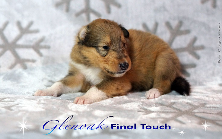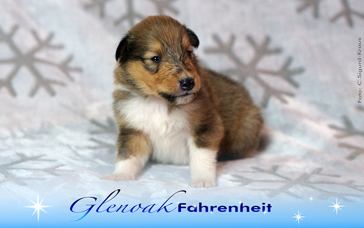 F-Wurf *29.11.15 Wir heißen unsere sieben Advents-Colliekinderchen willkommen! Vier sable Rüden, zwei sable Hündinnen und eine trico Hündin. Marcy hat ihren ersten Wurf souverän gemeistert und die junge Familie ist wohlauf. 1. Hündin: sable-white Glenoak Fairy Qeen (vergeben) 2. Hündin: sable-white Glenoak Fantasy Girl (vergeben) 3. Hündin: tricolor Glenoak Fire In My Soul (vergeben) 4. Rüde: sable-white Glenoak Fahrenheit (vergeben) 5. Rüde: sable-white Glenoak Fairplay (vergeben) 6. Rüde: sable-white Glenoak Final Touch (vergeben) 7. Rüde: sable-white Glenoak Freeze Frame (vergeben) F-Litter We welcome our seven Advent-puppies! Marcy did a good job and everybody is doing fine „heart“-Emoticon Four sable boys, two sable girls and one trico girl. Proud sire is Pol. CH. Tapestry Hold That Dream. We would like to thank Beate Alexander for making this combination possible. 1. Hündin: sable-white Glenoak Fairy Qeen (placed) 2. Hündin: sable-white Glenoak Fantasy Girl (placed) 3. Hündin: tricolor Glenoak Fire In My Soul (placed) 4. Rüde: sable-white Glenoak Fahrenheit (placed) 5. Rüde: sable-white Glenoak Fairplay (placed) 6. Rüde: sable-white Glenoak Final Touch (placed) 7. Rüde: sable-white Glenoak Freeze Frame (placed)