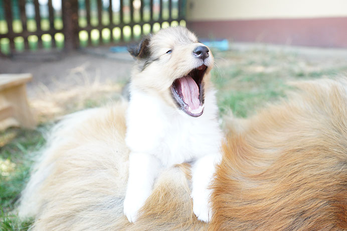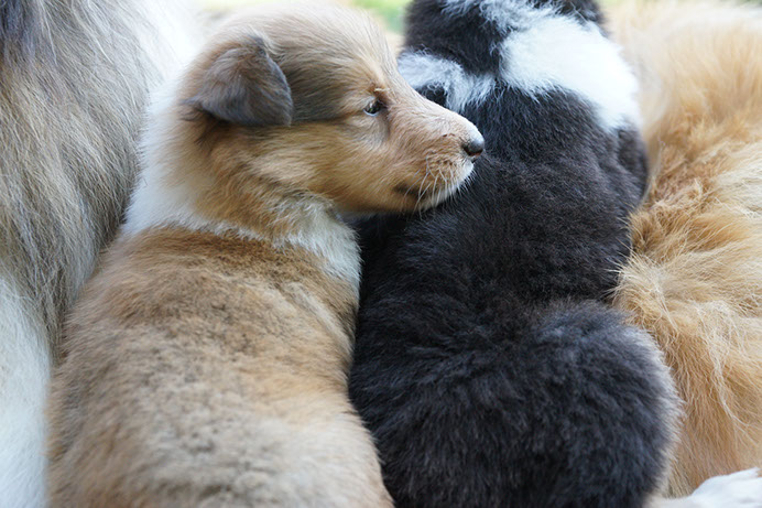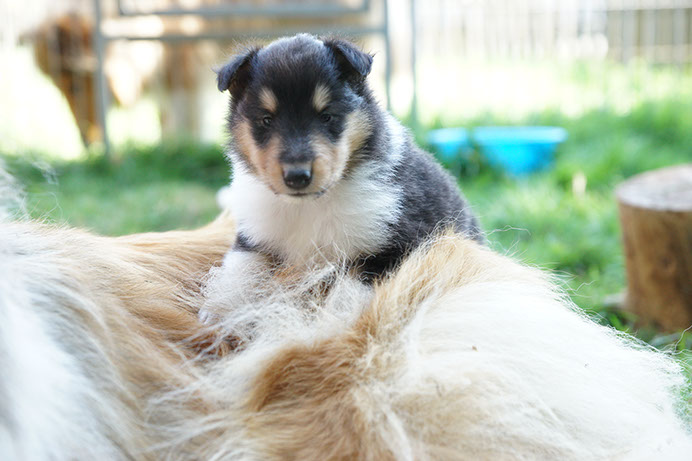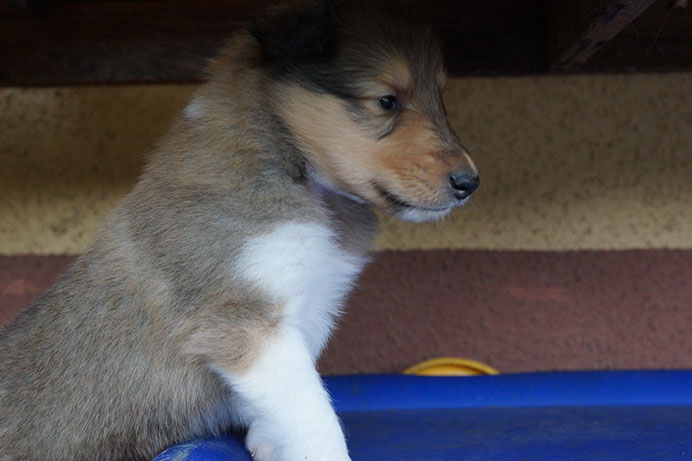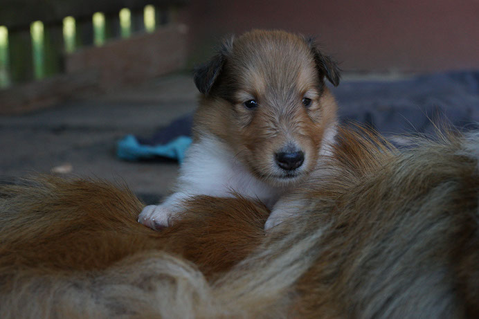 G-Wurf *14.08.16 Wir heißen unsere vier Colliekinderchen willkommen! Alle Vier Welpen sind wohlauf und Bonny ist eine liebevolle Mutterhündin. 1. Rüde: sable-white Glenoak Gold Vein (vergeben) 2. Rüde: dark sable-white Glenoak Gold Fever (vergeben) 3. Hündin: dark sable-white Glenoak Gold Brocade (vergeben) 4. Hündin: tricolor Glenoak Gold Embossed (vergeben) G-Litter We welcome our four puppies! All four are doing fine and Bonny is a loving dam. 1. Boy: sable-white Glenoak Gold Vein (placed) 2. Boy: dark sable-white Glenoak Gold Fever (placed) 3. Girl: dark sable-white Glenoak Gold Brocade (placed) 4. Girl: tricolor Glenoak Gold Embossed (placed)