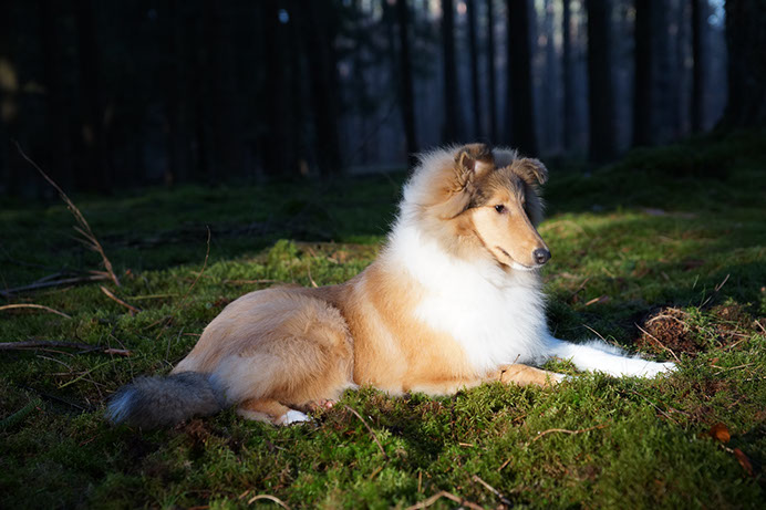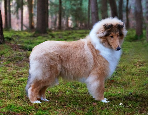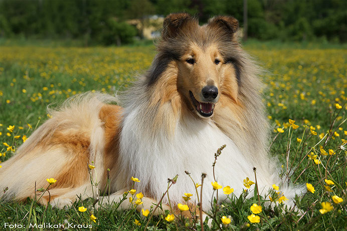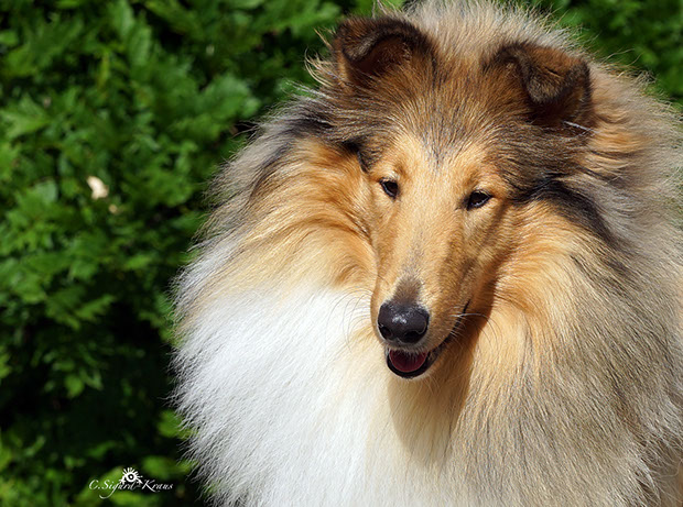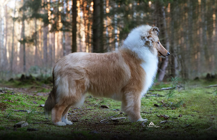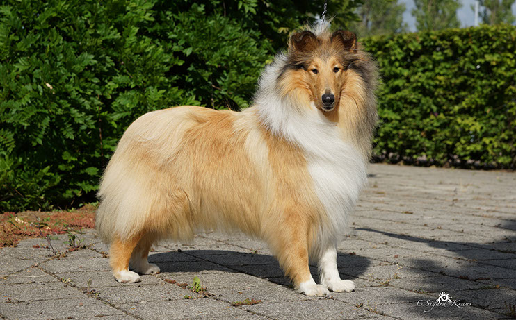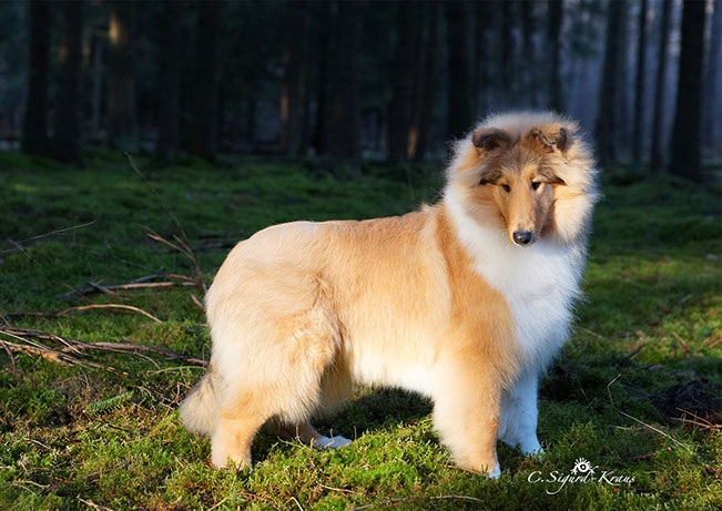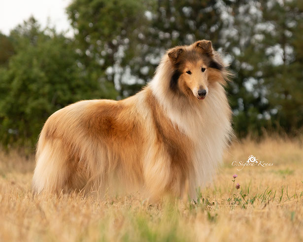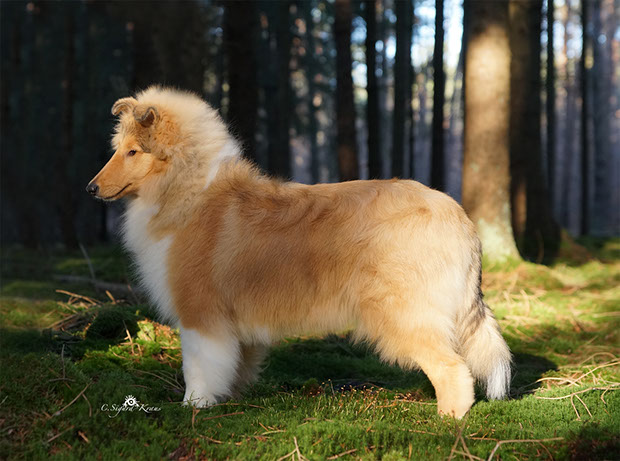 'MARCY' ist zwar die Kleinste im Rudel, hebt sich jedoch durch ihre große Persönlichkeit (viel "will to please"- menschenbezogenes Wesen) hervor. Wir schätzen ihren kompakten Körperbau, die perfekten Naturkippohren, vom Vater vererbten kräftigen Unterkiefer und ihr rundes ausgefülltes Vorgesicht. 'Marcy' hat viel Knochensubstanz und sehr gute Felltextur. Diese kleine hübsche Hündin hat das gewisse "Extra", wodurch sie sich oft von der Menge abhebt. Sie zählt zu den TOP-5 der erfolgreichsten Junghunde 2014! (lt.: Collie Revue 06/15) Titel Deutscher Chmapion (VDH) Deutscher Champion Club (DCC e.V) VDH-Europasiegerin 2015 Deutscher Jugendchampion (VDH & CfBrH) Luxembourg Jugendchampion Junior Benelux Winner 2014 Clubjugendsiegerin 2014 (DCC) Rheinhessenjugendsiegerin 2014 Ausstellungsergebnisse/ Show results 4xCAC, 1xCACIB, 5xJCAC, 1xJ.Res.CAC, 2xBJ, 3xBOB, 1xBIS Erklärung: CAC = Certificat d'Aptitude au Championat Anwartschaft für den Titel „Deutscher Schönheitschampion CACIB = Certificat d'Aptitude au Championat International de Beauté Anwartschaft für den Titel „Internationaler Schönheitschampion“ BOB = Best of Breed – das ist der Beste Hund der Rasse, ermittelt aus den beiden BOS-Hunden BIS = Best in Show – das ist der schönste Hund einer Ausstellung, ermittelt aus allen BOB-Hunden 'MARCY' is the smallest here at Glenoak, but her temperament and much "will to please" giving her a big personality. She is bold, outgoing and into everything. We love her moderate compact body, perfect naturally earset and her dad's good underjaw and full round muzzle. She has good bone substance and nice coat .This pretty little girl has that little something extra that makes her stand out in the crowd. She is among the TOP-5 of the most successful junior showdogs 2014! (acc. to.: Collie Revue 06/15) Titel German Champion (VDH & Club DCC e.V.) VDH-Europasiegerin 2015 Deutscher Jugendchampion (VDH & CfBrH) Luxembourg Jugendchampion Junior Benelux Winner 2014 Clubjugendsiegerin 2014 (DCC) Rheinhessenjugendsiegerin 2014 Ausstellungsergebnisse/ Show results 4xCAC, 1xCACIB, 5xJCAC, 1xJ.Res.CAC, 2xBJ, 3xBOB, 1xBIS Definition: CAC = Certificate d’Aptitude au Championat National competence certificate for the championship CACIB = Certificat d'Aptitude au Championat International de Beauté Competence certificate for the championship of International beauty championship BOB = Best of Breed BIS = Best in Show